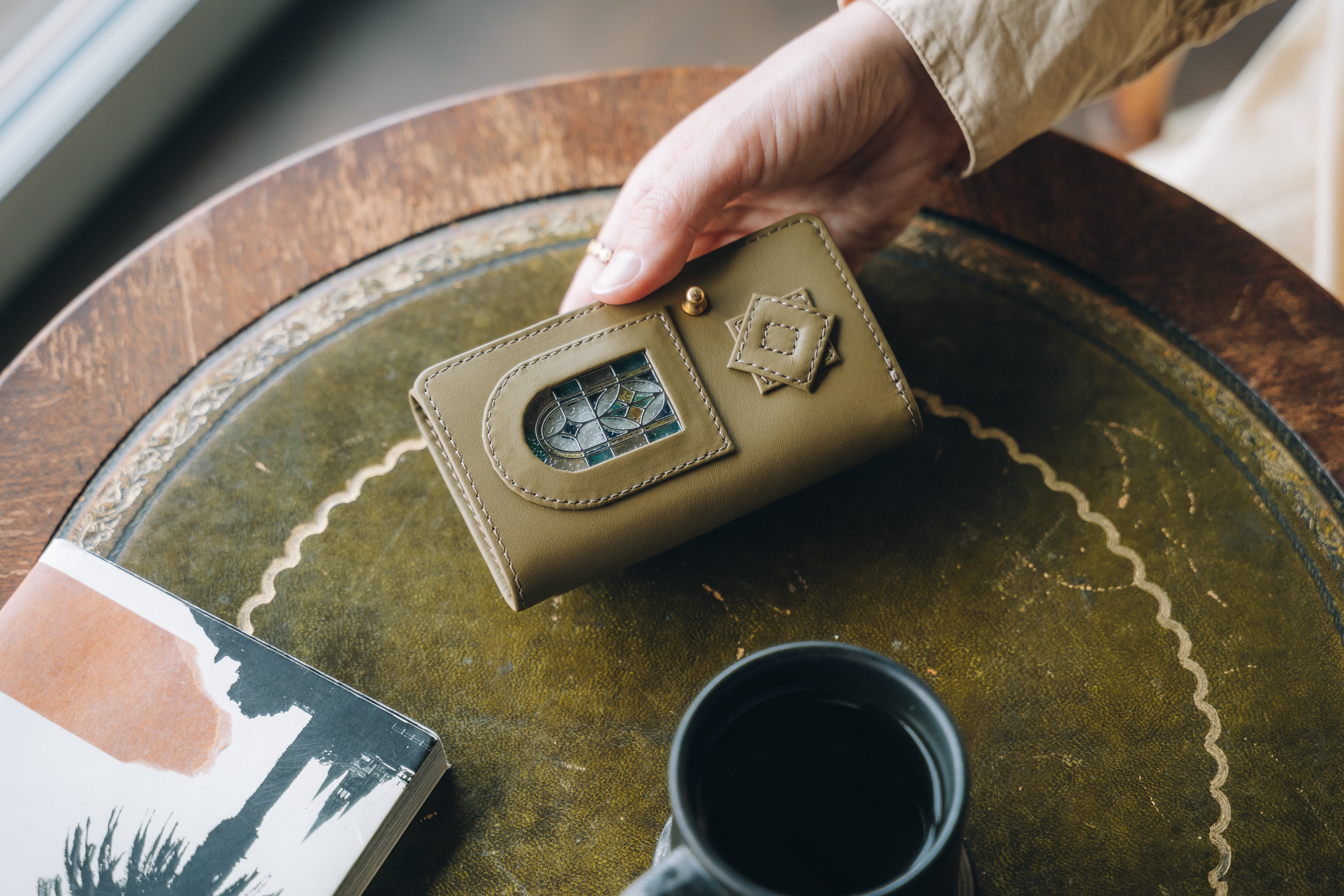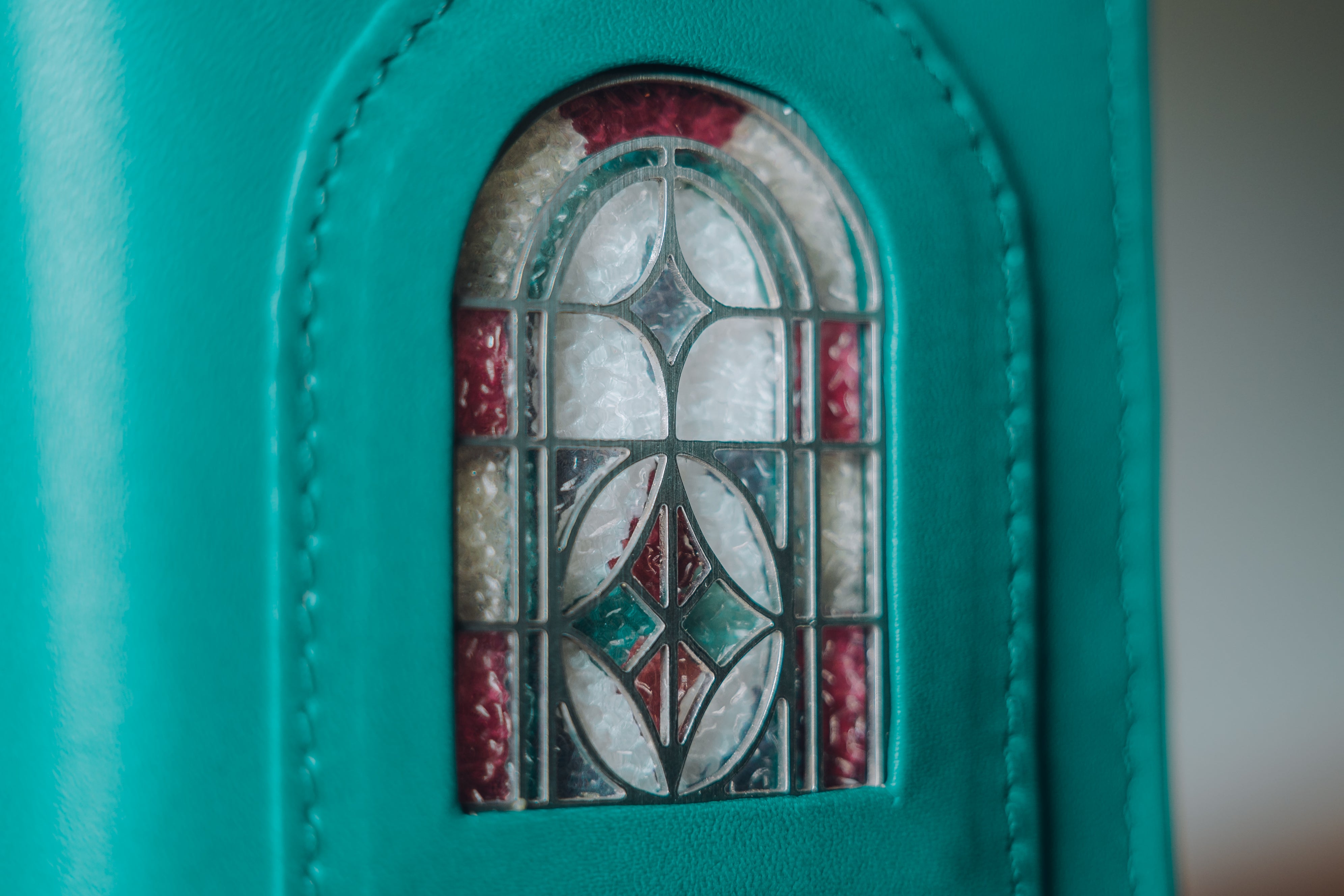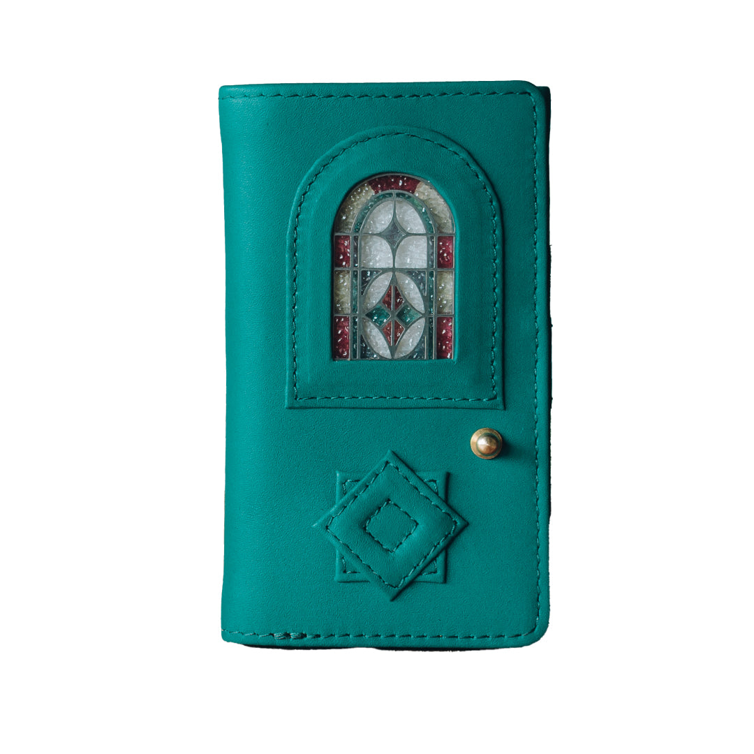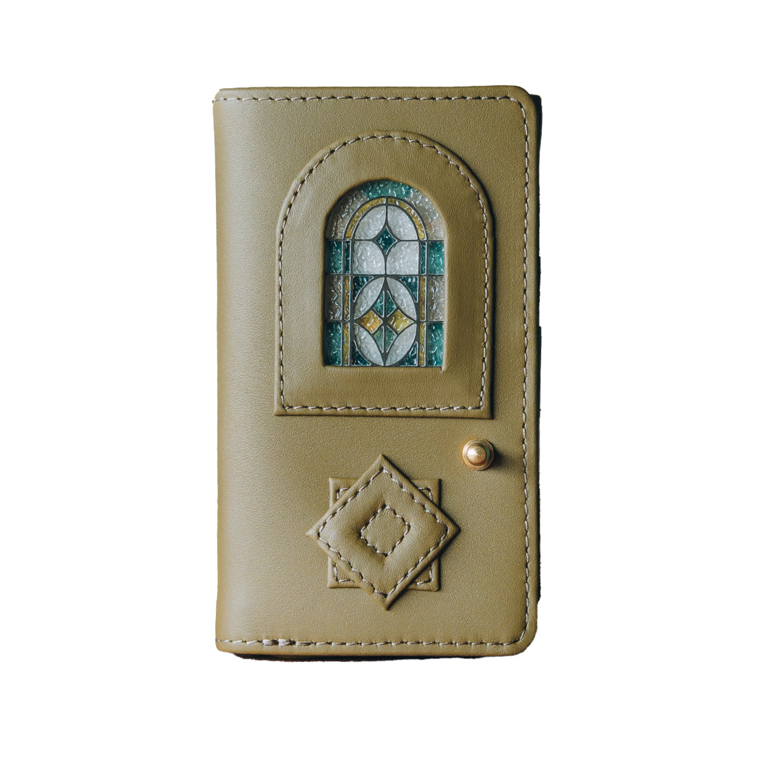 メルヘンにならぬよう、あくまでもリアルに。ヴィンテージのステンドグラスに近い色彩を表現したガラス部分と、フランス産アンタレスレザーとの絶妙なバランス。