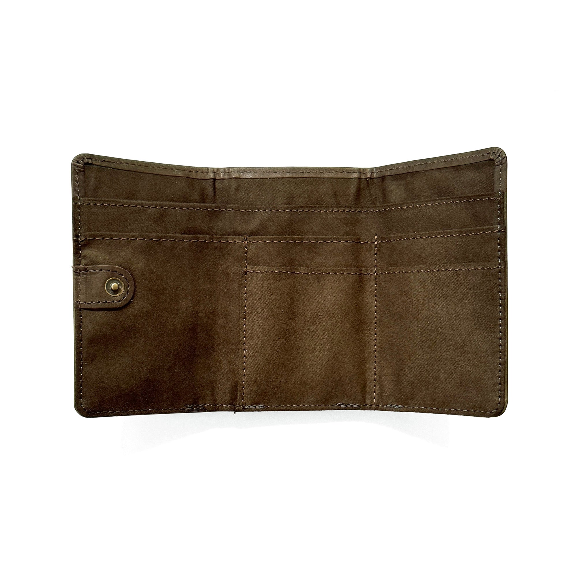 小銭、お札、カード7枚がコンパクトに収納できる三つ折り財布。