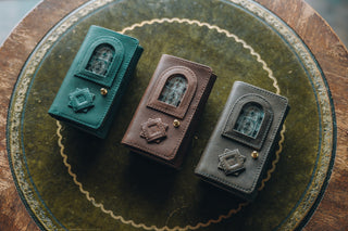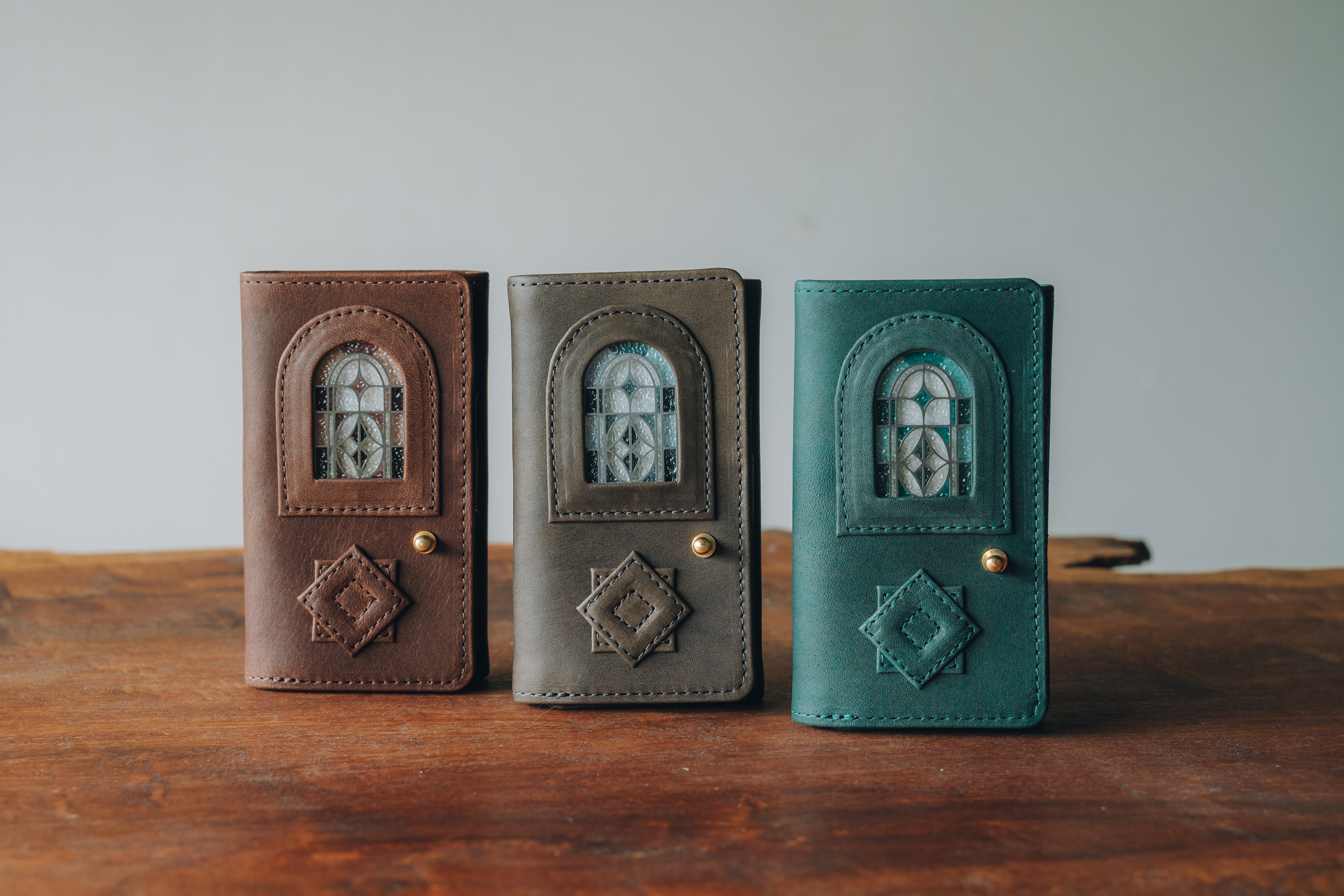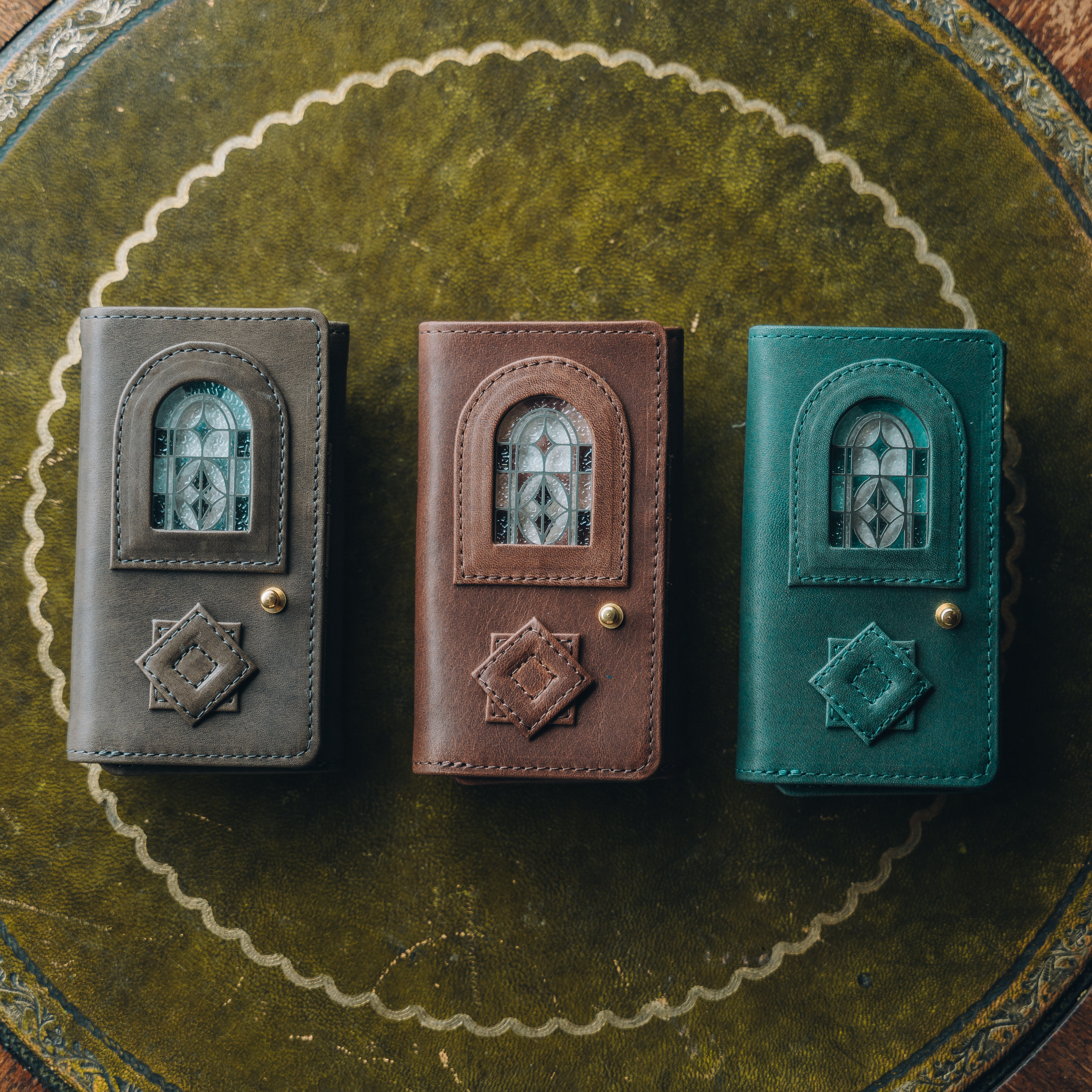メルヘンにならぬよう、あくまでもリアルに。ヴィンテージのステンドグラスに近い色彩を表現したガラス部分と、フランス産アンタレスレザーとの絶妙なバランス。