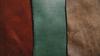 植物タンニンとクロムなめしのヌメ革を染料で染めたあと、